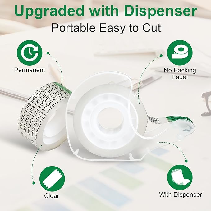 Double Sided Tape for Gift Wrapping with Dispenser, 3/4 in x 300 in, Double Stick Tape 60 Pack, Christmas Wrapping Paper Tape, Linerless, Office and School Supplies
