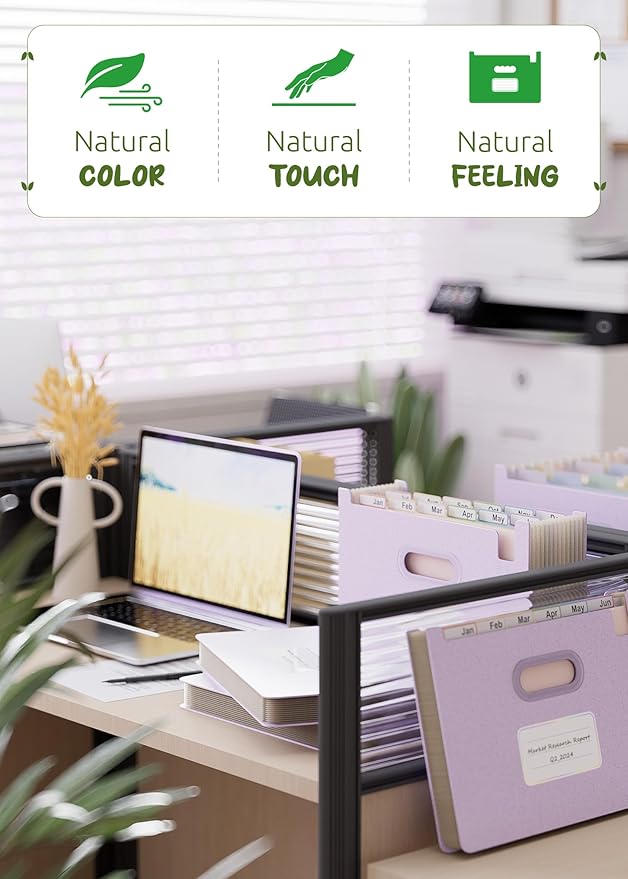 - 【Natural Color Selection】EcoStash wheat straw Expanding File Folder have a unique texture and appearance. Available in 4 colors: Mint Green, Sky Blue, Wheat Yellow, and Lavender Purple. Using different colors allows you to easily organize and distinguish documents. Its outstanding aesthetics allow you to experience the breath of nature in your daily use, adding a unique style to your document organization and protection.