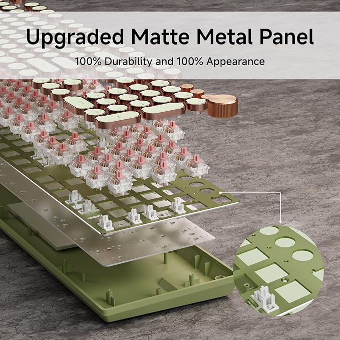 - 【Metal Panel and Electroplated Punk Keycaps】:The typewriter gaming keyboard panel is made of top-grade aluminium alloy, with a metallic matte texture, sturdy and robust enough to protect it from scratch. The floating keycaps are carefully crafted using metal plating technology, with a unique monochromatic light that instantly makes your keyboard look stunning, and enhances the feeling of the wired backlit keyboard.