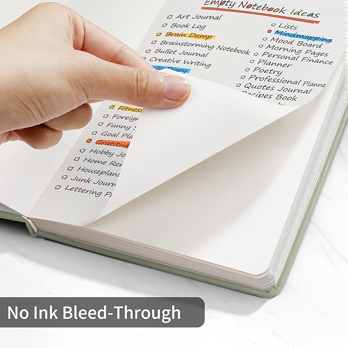 - Multifunctional Cover: The hard cover is made of vegan leather, and designed with a pen loop, an elastic band, two ribbon page markers, an expandable inner pocket.