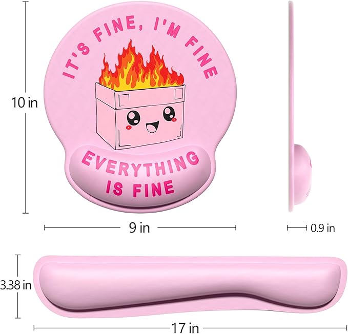 Dapesuom Keyboard Wrist Rest and Mouse Pad with Wrist Support, Cute Memory Foam Cushion for Keyboard and Mouse Set, Desktop Pad Rests with Non Slip Base for Easy Typing & Pain Relief, Pretty Dumpster