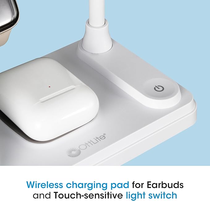 Ottlite LED Desk Lamp with Multi-Device Charging Station, White