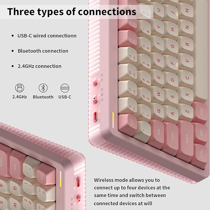 - 【Multi-device switching】NuPhy Halo96 V2 Wireless Keyboard offers three connectivity options including Bluetooth 5.0, 2.4GHz, and USB C wired modes. The wireless mode allows for up to 4 devices to be connected at the same time,and switch between them easily by FN+ combination keys. Satisfy work, play and study needs.