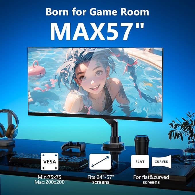 - Full-motion adjustments: +60°/-20° tilt and +90°/-90° swivel to change reading angles, and 180° rotation from landscape to portrait orientation. with 26″maximum height and 21.5″long arm reach provide flexible and more immersive gameplay experience