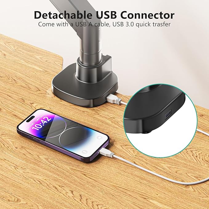 - Articulation and easy installation with both C clamp and grommet kits, compatible with 0.39"-1.77" thick desk. The enlarged base and strong clamp ensure safety and stability for your computer screen, and protect your desk from damage and scratches