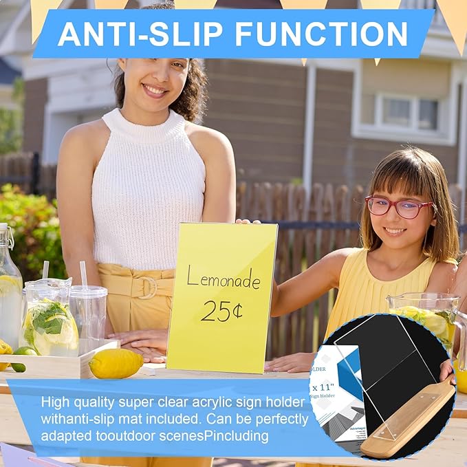 - Package Includes: 6 packs of 8.5 x 11 inch acrylic display holders, 24 pcs of self-adhesive stickers that the wind won't blow it over, even when used outdoors
