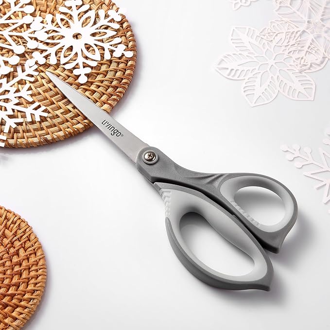 LIVINGO 3 Pack Scissors for Office: Sharp Stainless Steel Shears Heavy Duty All Purpose for Cutting Crafting Paper Fabric, Gray Comfort Handles, 8.5 Inches