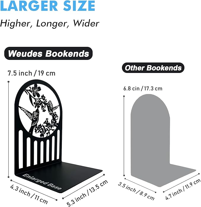 - 【Unique Design】:One of a kind hummingbird design book ends, the delicate design captures the grace and beauty of hummingbirds in flight, making the bookends a standout decoration for bookshelves and desks in office, home, library and school.