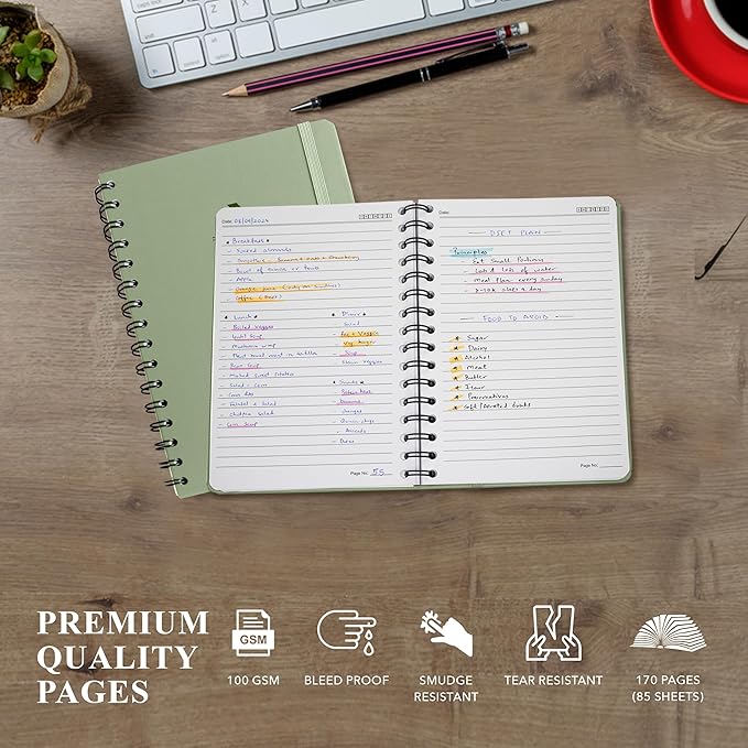 - STYLISH AND PROFESSIONAL - Available in Grey, Green, and Pink, these are great note books for work, school, or home. Its tear-proof outer cover and sleek design make it a must-have for boys, girls, students, classmates and professionals.