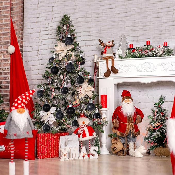 30ct Christmas Ball Ornaments, 1.18" Shatterproof Tree Decorations, Perfect Hanging Ball for Indoor/Outdoor Holiday Party Decor (Black)