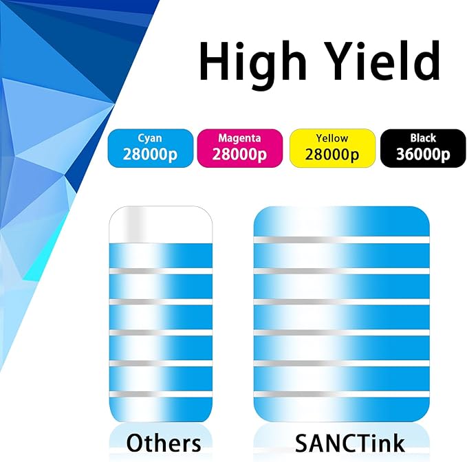 - 4.High Yield: 36000 pages in black, 28000 pages in color. (at 5 percentage coverage of A4 paper)