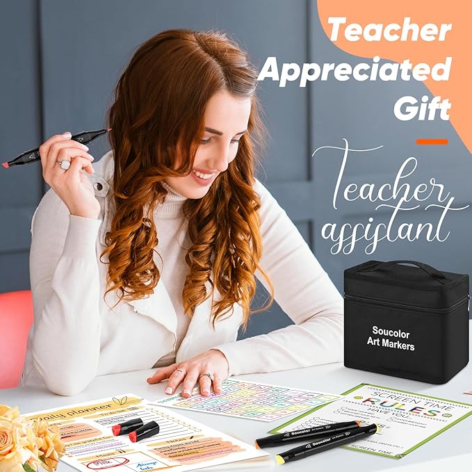 Soucolor Art Supplies for Kids Adult, Artist Art Set Kits, 120 Colors Numbered Dual Tip (Fine & Chisel) Alcohol Markers +1 Colorless Blender for Teen Boys Girls Gifts Trendy Stuff, Birthday Gift Case