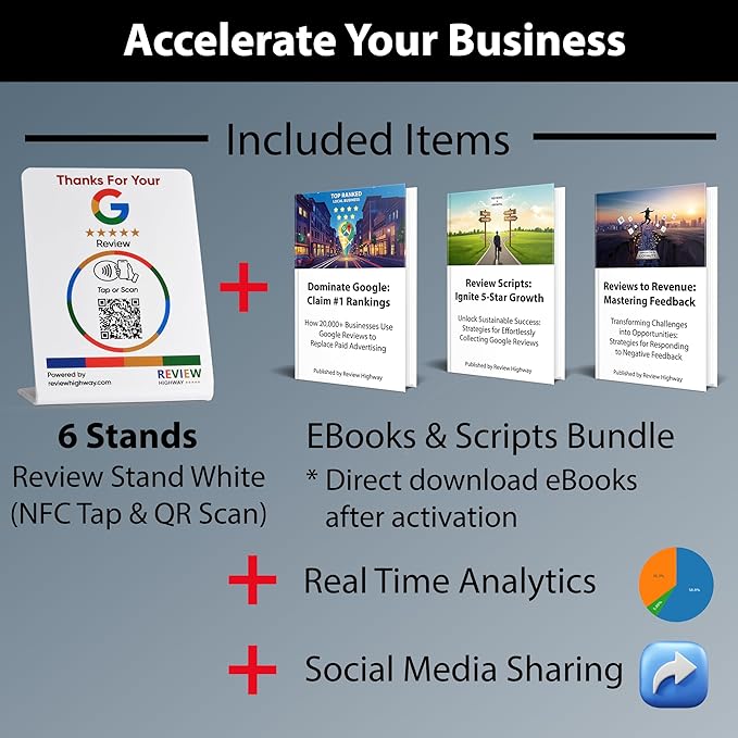 - ▶️EXCEPTIONAL CUSTOMER SUPPORT: Streamline your Google review stand setup with Review Highway's advanced software. Our friendly support is always on hand, and managing your NFC and QR card stand is easy with our tailored platform.