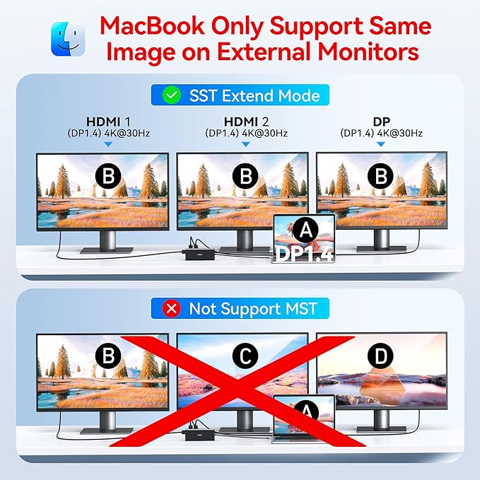 - Docking Station 14 IN 1: With this Docking Station Dual Monitor, you can easily fulfill your daily use by extending one USB C port to Dual Monitor 4K HDMI, Displayport, Gigabit Ethernet, 2 USB 3.0 ports, 2 USB 2.0 ports, USB C Power Charging Port (max 100W), 2 USB C Data Transfer port(5Gbps),SD/Micro SD card readers and 3.5mm Mic/audio. USB C Hub Multiport Adapter for Windows. Please Note: on MacOS system, the screens of external monitors are the same, no matter they are displayed in mirror mode or extended mode