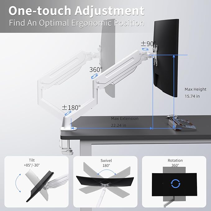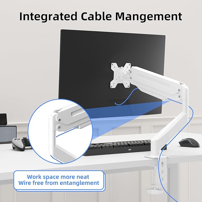 Suptek Single Monitor Mount Adjustable Gas Spring Monitor Arm Desk Mount Stand Fits 17 20 22 23 24 26 27 32 33 inch Monitors,Holds up to 22 lbs,White(MD18W)