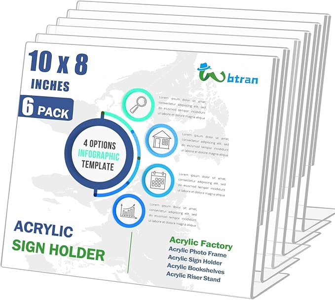 - 【Acrylic Sign Holder 8 x 10 Horizontal】: Our acrylic sign holder is a standard size of 10 x 8 inch, suitable for all pictures, text and logos printed.