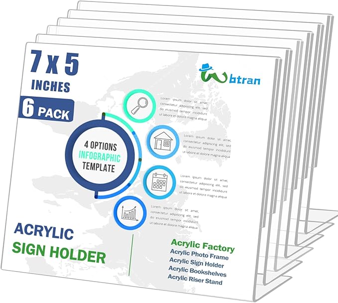 - 【Acrylic Sign Holder 5 x 7 Horizontal】: Our acrylic sign holder is a standard size of 7 x 5 inch, suitable for all pictures, text and logos printed.
