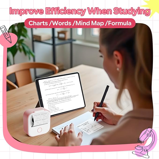 - Mini thermal printer for learning: Ponek sticker maker can be used for study notes, diagrams and excerpts of various charts and notes in mathematics, chemistry, physics, and more. The mini printer sticker maker can help save time and improve efficiency