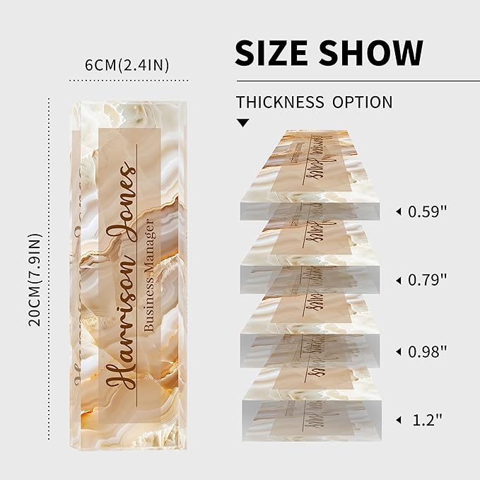 - 【High-Quality Acrylic Material】Our factory uses high-quality solid acrylic blocks to make name plates, and uses the latest high-definition UV printing machine to ensure that the content on the acrylic name plate is clear and not easily faded. So it will stand out on any desk, fully reflecting your professional ethics.