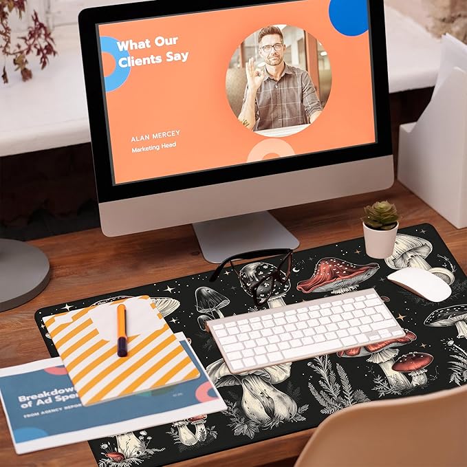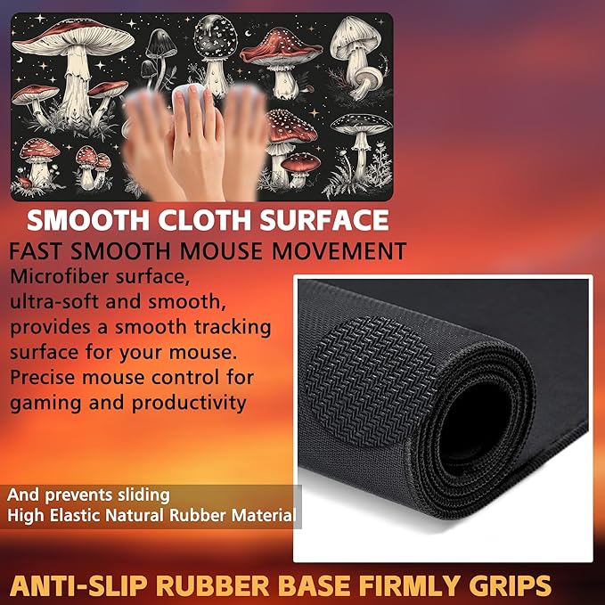 Psychedelic Mushrooms Desk Mat, Large Gaming Mouse Pad, 31.5"x15.7", Extended Big Computer Keyboard Mouse Pad with Non-Slip Base and Stitched Edge