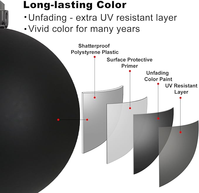 Black Christmas Ornaments - Christmas Tree Decorations Shatterproof Hanging Balls for Birthday Wedding Holiday Decor Set of 36pcs, Multi-Sizes(1.6",2.5",3.2")