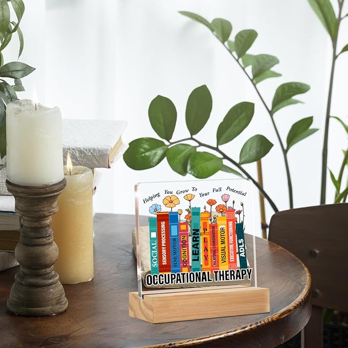 Occupational Therapy Gifts for Therapist, Occupational Therapist Gifts, Floral OT Occupational Therapy Clear Desk Decorative Sign Therapy Office Acrylic Decor