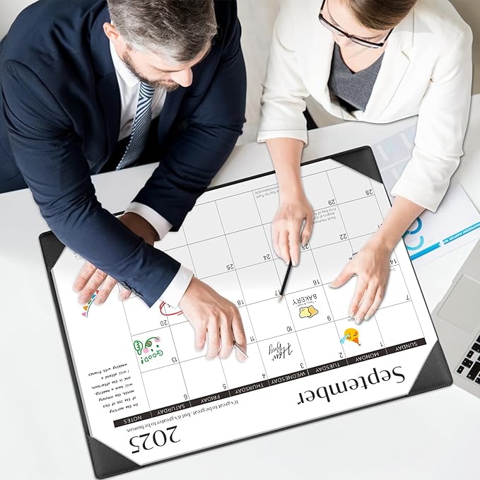 - 📔【Unique Design】Simple and neat writing pages are more suitable for office workers to plan their lives, bottom desktop mat is made of double-layer PU leather, which is non slip and dirt resistant, protecting your calendar from scratches and stains.