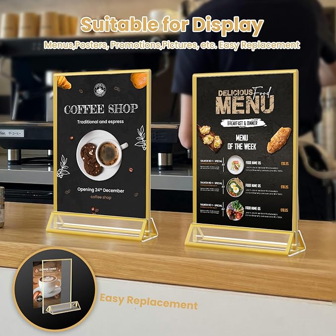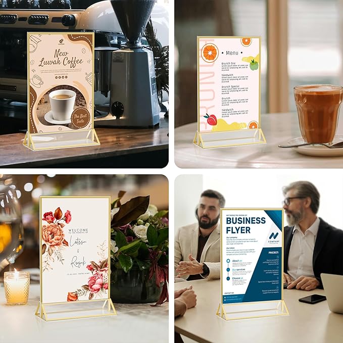 - 【Wide Application 】The 5x7 acrylic sign holder can be used at other important events, such as wedding table number holders, table number stands, sign holder, paper display stand, menu holder. This frame with gold trim will be a great way to cherish special memories in your home or as part of a table set up on your big day.