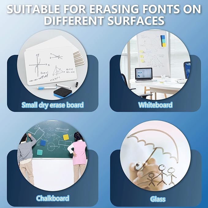 - Versatile Applications: Ideal for a variety of settings including homes, offices, schools, dormitories, game rooms, and play centers. These dry erase board erasers are a great aid for managers, teachers, students, and kids, perfect for presentations, drawing, education, and score counting.