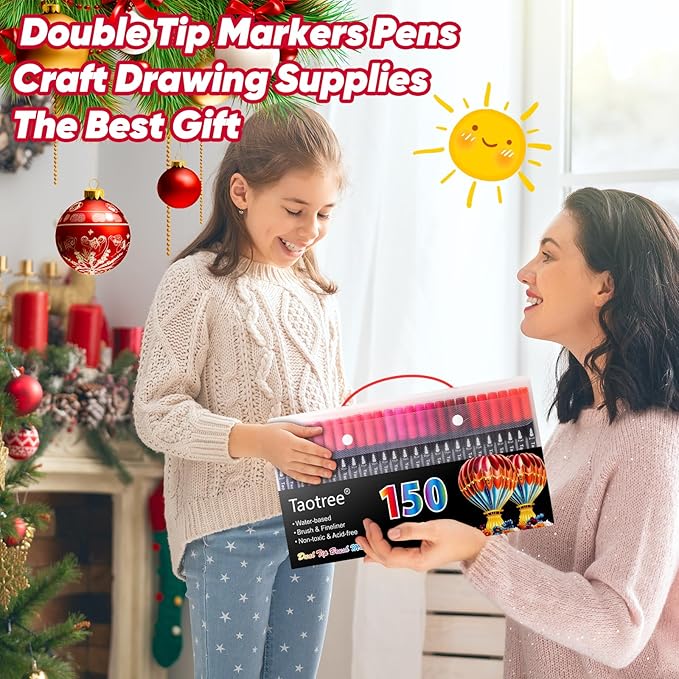 Taotree 150 Colors Dual Tip Art Markers Pens for Kids Adult Coloring Book, Artist Fine & Brush Tip Coloring Markers Drawing Pen for Journaling Note Taking Lettering Calligraphy Craft Art Supplies Set