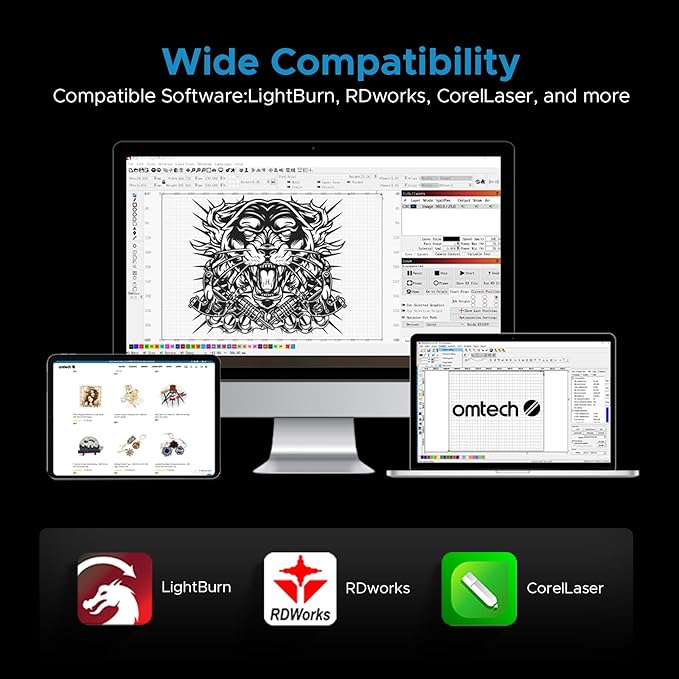 - Design, Engrave, & Impress: OMTech's 130W CO2 laser engraver engraves as deep as 0.4" (10 mm) on various nonmetallic materials such as wood, glass, acrylic, leather, and more. With speeds up to 1000 mm/s (39.8 ips), it transforms your artistic visions into realities that draw wows and aahs