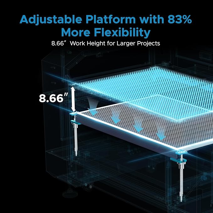 - Get Right to Work with Autofocus: No more struggling with manual adjustments or guesswork. This laser engraving machine's workbeds adjust up and down at the touch of a button and the preinstalled autofocus will automatically find the right focal distance for you
