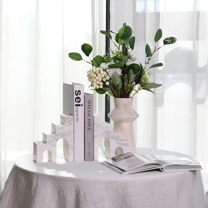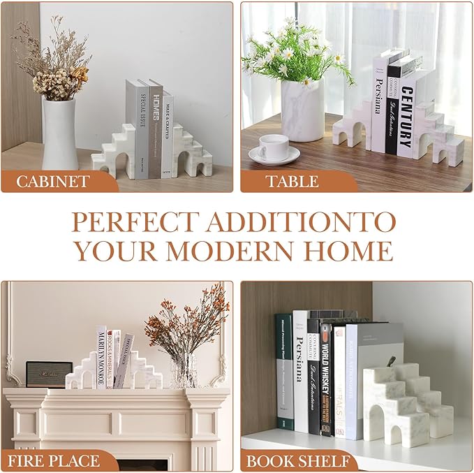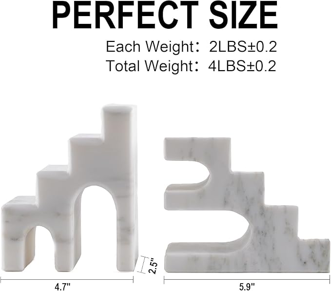 - Durable and Practical ---- The marble bookends are great for organizing your books, CDs, DVDs, and magazines, these book stoppers will make your reading time better and your bookshelf more tidy and organized. The aesthetic book ends also maintain long-term stability and will not be deformed by external factors, ensuring that your books are always securely placed.