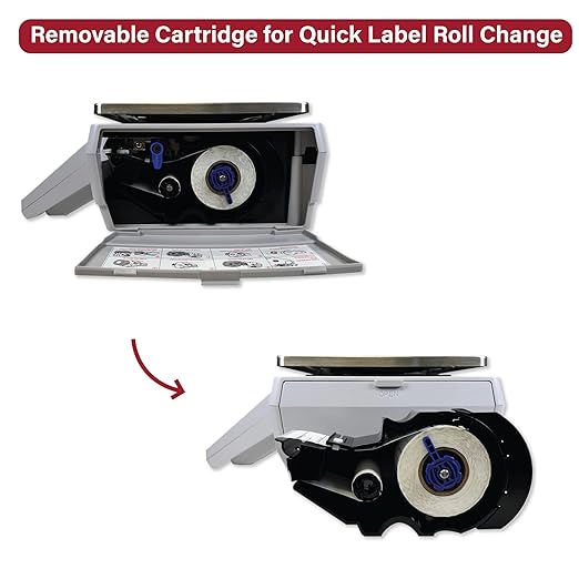 - Cartridge System Label printer comes with cartridge system for quick label roll change and high-speed printing