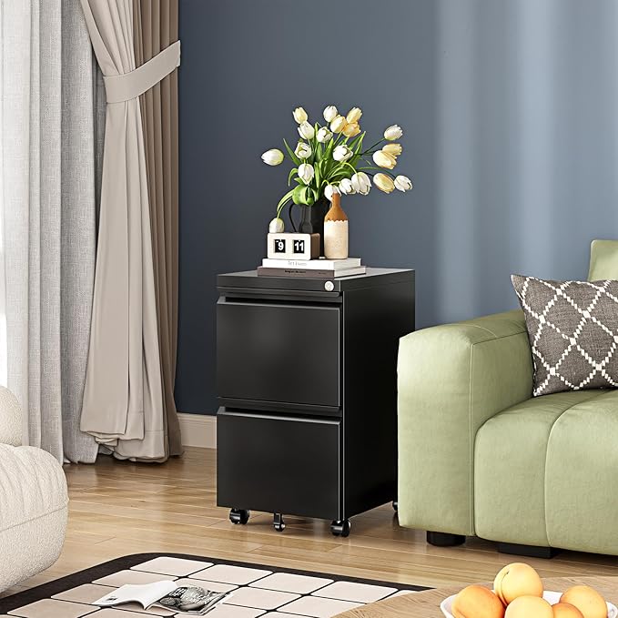 - ✅➤【LOCK AND ANTI-TILT DESIGN FOR HIGHT SECURITY 】: The sturdy file cabinet comes with 2 keys to lock up the top and bottom drawers. And the small wheel in the front that keeps the cabinet from tipping. The rear casters can be moved around and locked. Easy to move around and enough space for your files and keep important Files. Home files fit well in this stable and movable 2-drawer file.