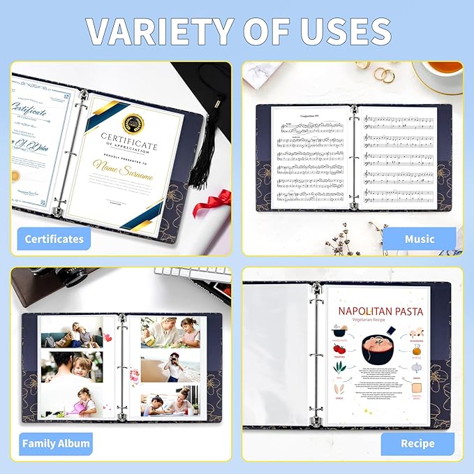 - Standard Hole Punch Design: Standard hole punch design fits into any 3-ring binder, allowing you to organize and store your documents easily