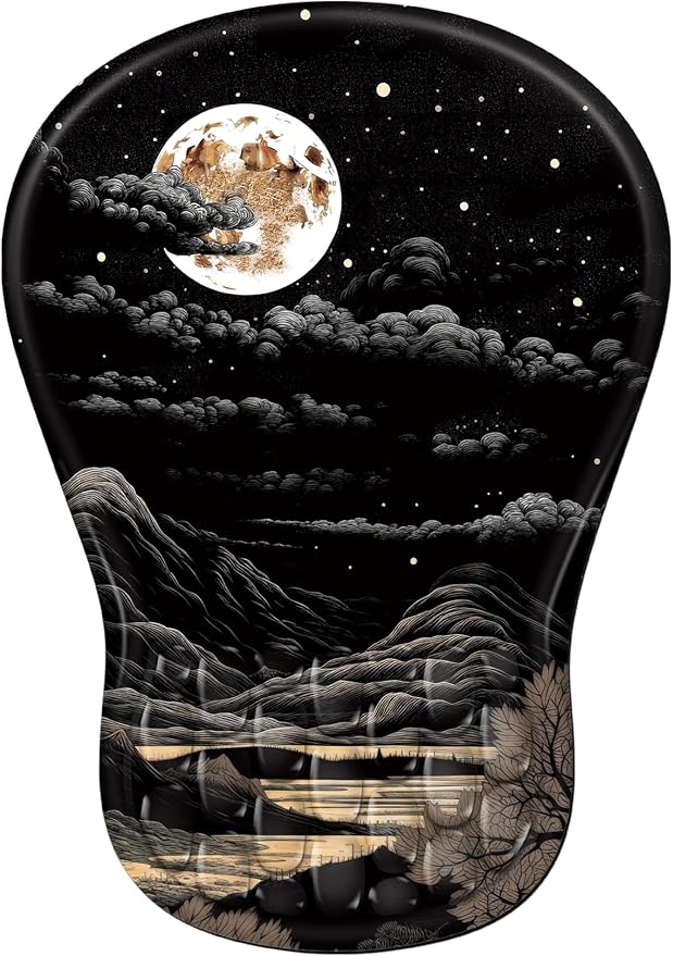 YIWEI Ergonomic Mouse Pad with Wrist Rest Support, Mousepad with Comfortable Memory Foam Wrist Rest and Non-Slip PU Base for Pain Relief, Computer, Laptop, Office, Home (Moon)