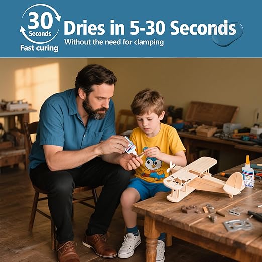 - ⭐Fast And Versatile And Efficient: Instant wood glue bonds in just 5-30 seconds,the clear liquid Ideal for furniture repairs and model building, woodworking, our wood furniture glue sets dries clear, guaranteeing visually appealing and strong bonds. The wood flooe glue is perfect for furniture assembly and fine woodworking and can handle clamping to enhance bond strength