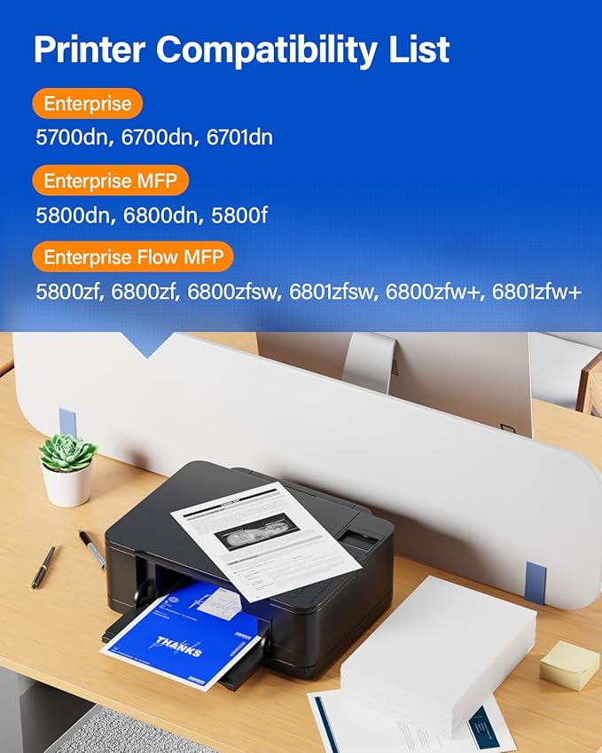 - Compatible Devices : Compatible for HP Color LaserJet Enterprise 5700dn,6700dn,6701dn Color LaserJet Enterprise MFP 5800dn,5800f,6800dn Color LaserJet Enterprise Flow MFP 5800zf,6800zf,6800zfsw Color LaserJet Enterprise Flow MFP 6800zfw+,6801zfsw,6801zfw+ Laser Printer Compatible for HP Color LaserJet Enterprise 5700dn,6700dn,6701dn Color LaserJet Enterprise MFP 5800dn,5800f,6800dn Color LaserJet Enterprise Flow MFP 5800zf,6800zf,6800zfsw Color LaserJet Enterprise… See more