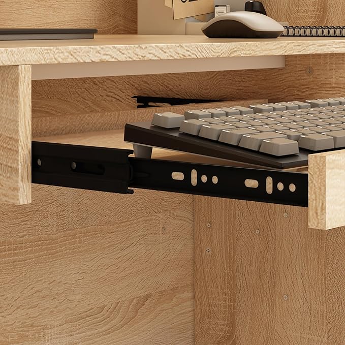 - 【Ample Storage Space】This reception desk is not only aesthetically pleasing, but also has enough storage space with a wide countertop and a keyboard tray. There is a cabinet with 2 doors and 1 drawer attached to the side, which is convenient for organizing and storing often used files or stationery.