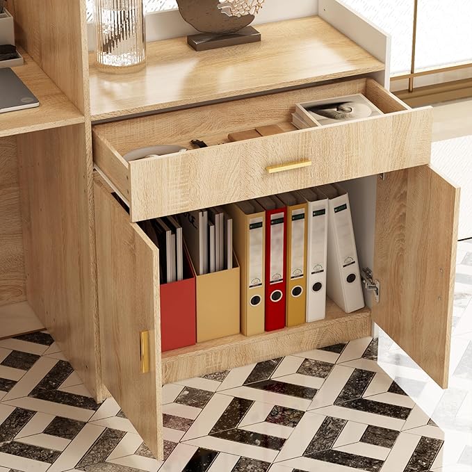 - 【Modern Style】The white and oak color combination gives this reception counter table a clean and simple look. The clean design and lines are also very suitable for Scandinavian and Minimalist interior. Add a premium and elegant vibe to your workplace.