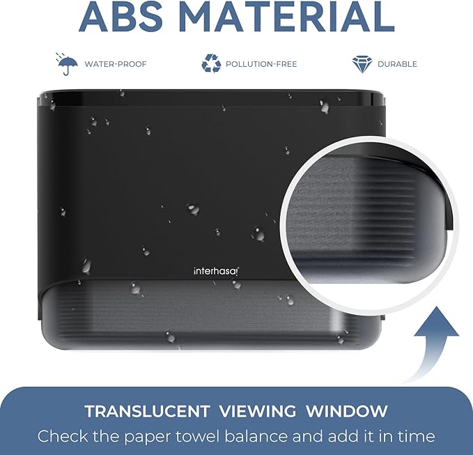 - 【SLEEK PAPER DISPENSER】This sleek bathroom paper towel dispenser is made of high impact ABS material. Built to last even for high-traffic areas. Designed with smooth surface and round edges for easy daily maintenance.