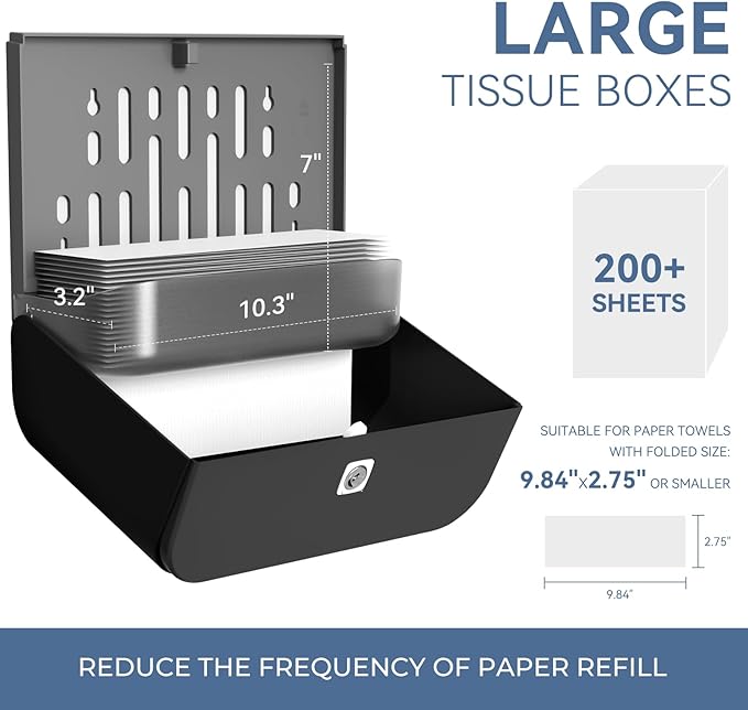 - 【200pcs CAPACITY & TRANSPARENT WINDOW】This towels dispenser Holds up to 200 papers. You can quickly check and refill towels by the big transparent window.