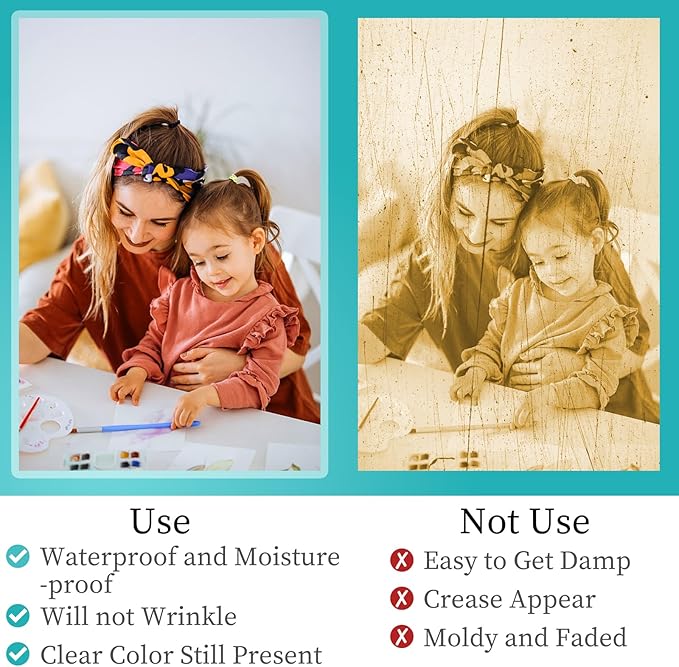 - 😊【Strong Protection】Laminator sheets provide lasting protection for your important pictures, documents, or photos etc. Waterproofing, moisture resistance, photo protection from fading, scratch resistance, and wrinkle resistance