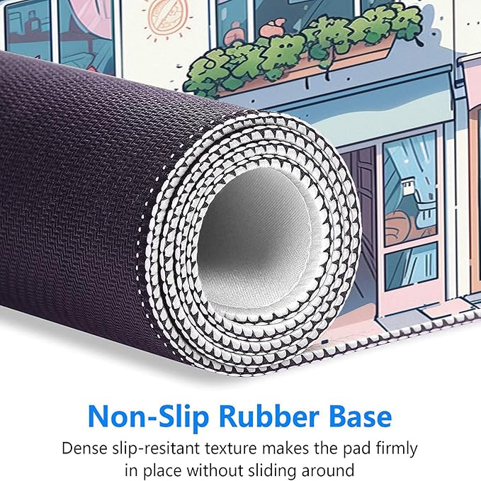 Cute Kawaii Gaming Mouse Pad Desk Pad Anime Street Aesthetics Large Gaming Mouse Mat with Stitched Edges,Non-Slip Waterproof Rubber Base Mous Mat Office Computer Keyboard Laptop Home 31.5"x11.8"
