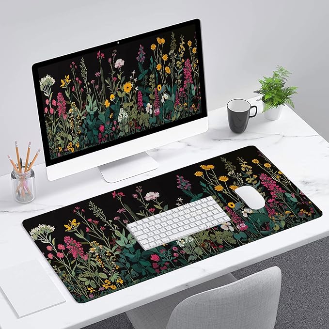 Floral Desk Pad Mouse Pad Weeds Flower Aesthetic Wildflower Mousepad XL Large Gaming Mouse Pad Laptop Keyboard Mat Desk Pad Office Home Decor for Women Girl 31.5"x11.8"