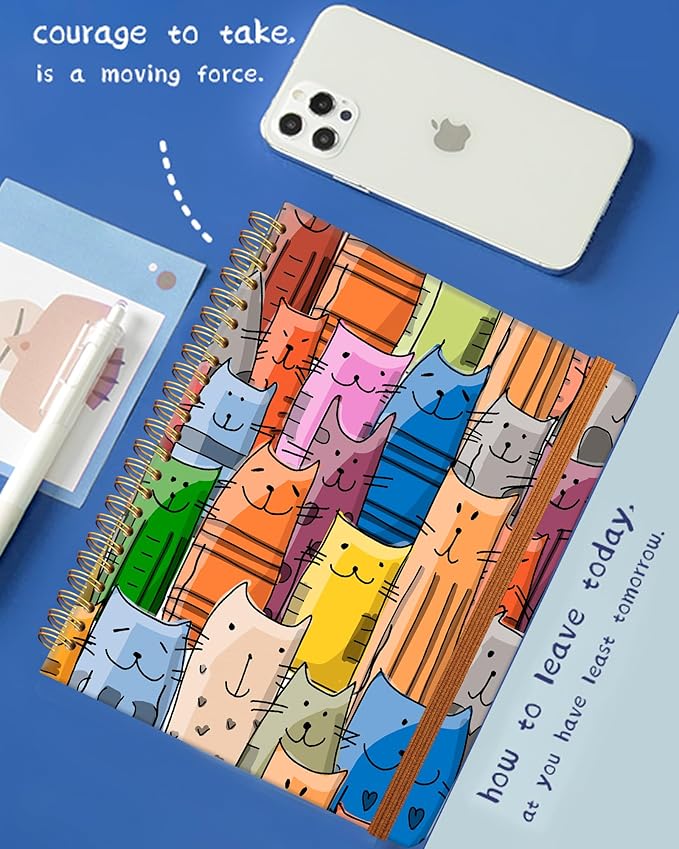 Ruled Spiral Writing Notebook,A5 Hardcover Lined College Journal for Women Lady,Fashion Puppy Watercolor Strong Twin-Wire Binding with Premium Paper,8.4" X 6",Perfect for School,Office,Home Gifts(Funny Cats)