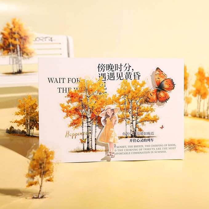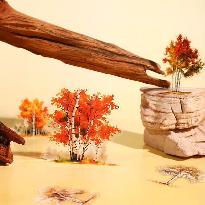 - Seasonal Birch Forest Theme: Explore the beauty of nature with our Birch Grove PET stickers, featuring a variety of birch trees in different seasonal settings. From the vibrant colors of autumn leaves to the fresh greens of spring, these stickers bring the serene charm of a birch forest to your creative projects