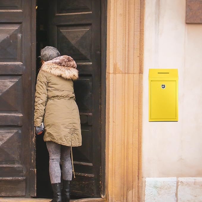 Metal Donation Cash Box Collection Safe Suggestion Box with Lock Wall Mounted Mailbox Delivery Ballot Container for Home Office Outdoor Door