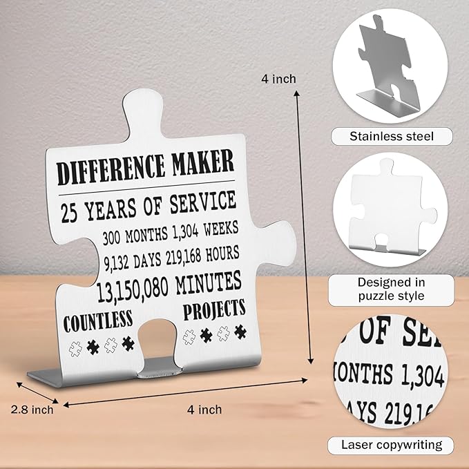 Thank You Appreciation 25 Year Work Anniversary Plaque Gifts, 25th Work Anniversary Decor Gifts for Women, Men, Employee, Coworkers, Happy 25th Work Anniversary Decorative Signs Plaques WDD14